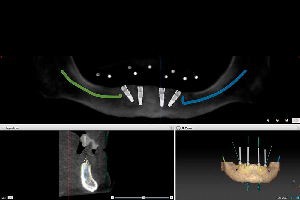 A partir de ahí con un programa informático se puede elegir la posición del implante en cuanto a la calidad ósea y la estética que queremos conseguir.