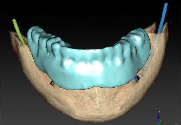 Mediante una férula, que puede ser la misma prótesis del paciente modificada, y la realización de un TC, obtenemos imágenes nítidas y de gran calidad de la estructura ósea del paciente.